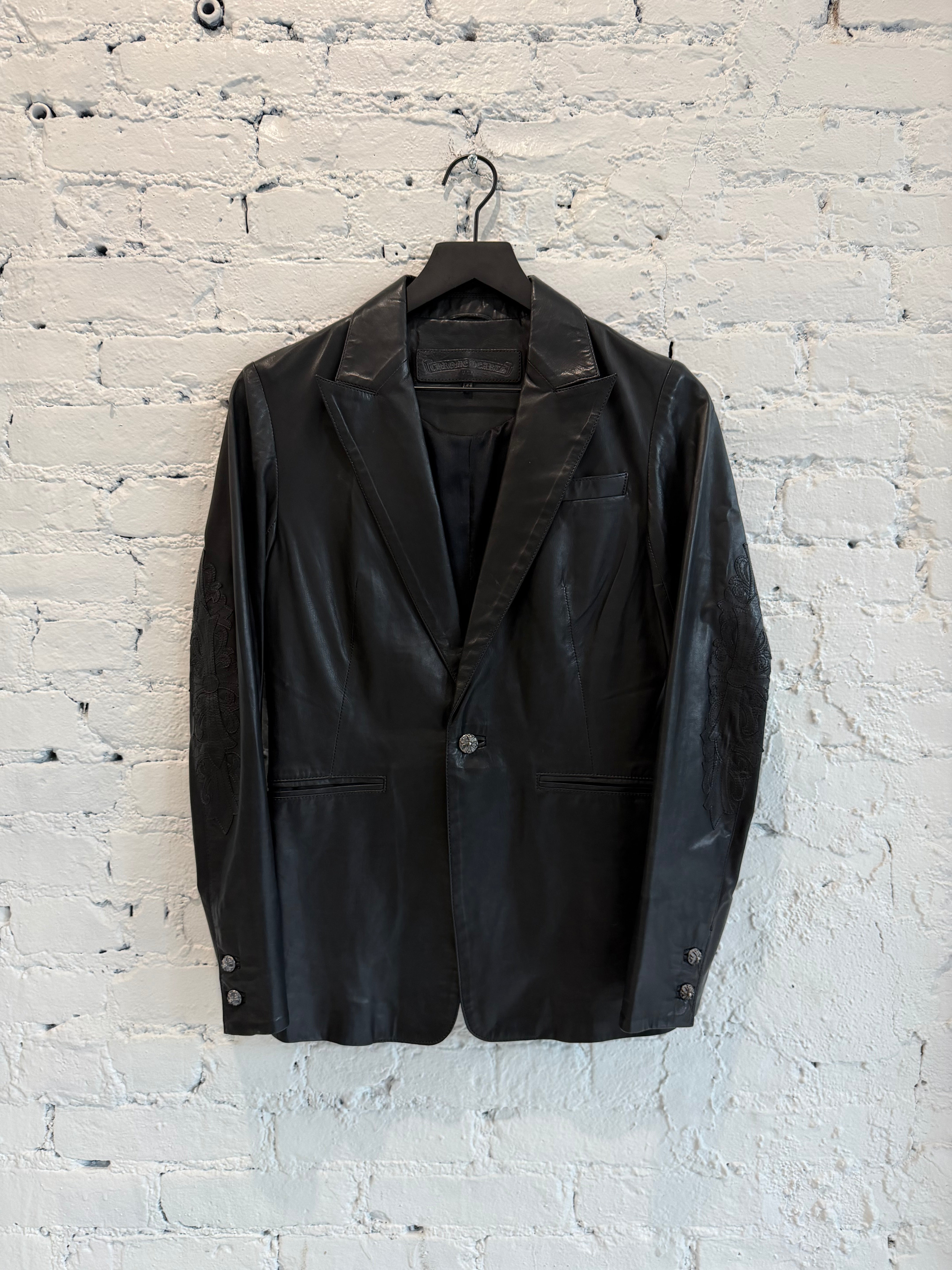 VINTAGE CHROME HEARTS LEATHER FLEUR BLAZER